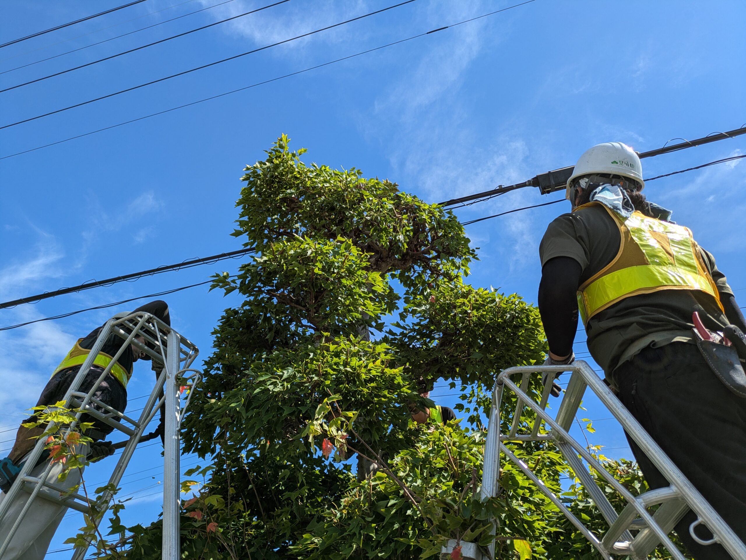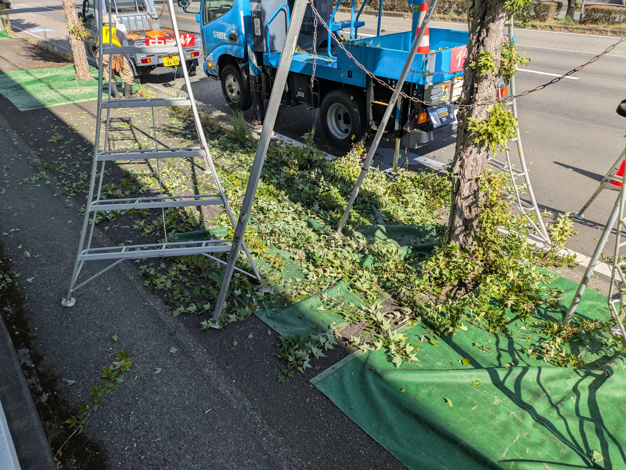 プラタナス トウカエデ イチョウ アカシアなどの落葉樹を中心に、安全に注意しながら、それぞれの剪定作業を行いました。